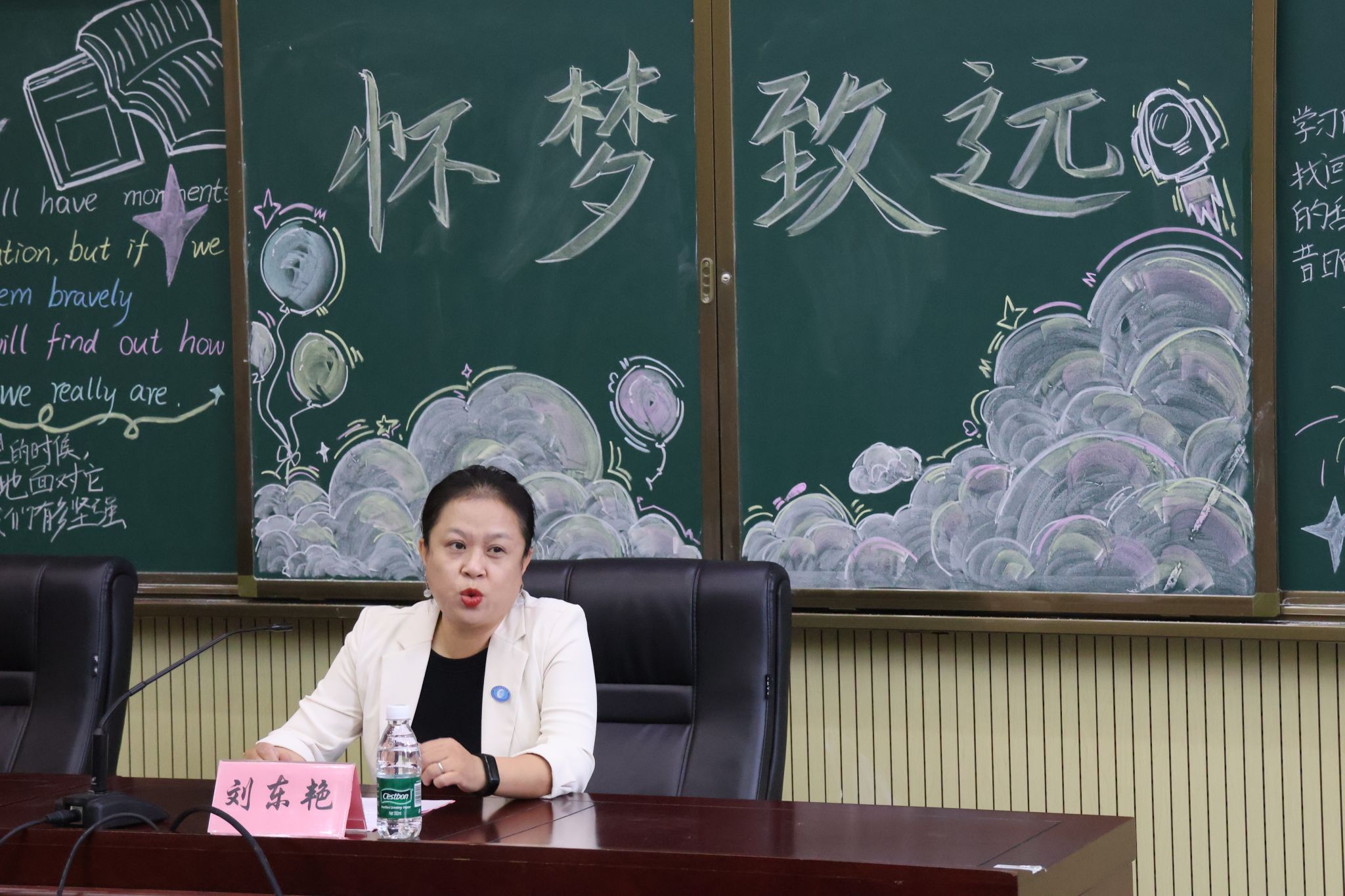 直属党支部书记刘东艳为开学典礼致辞,代表马克思主义学院向全体新生表示热烈地欢迎和诚挚的祝贺,并提出珍惜大学生活、注重理论学习、做到知行合一、严于律己,宽以待人的宝贵寄语。