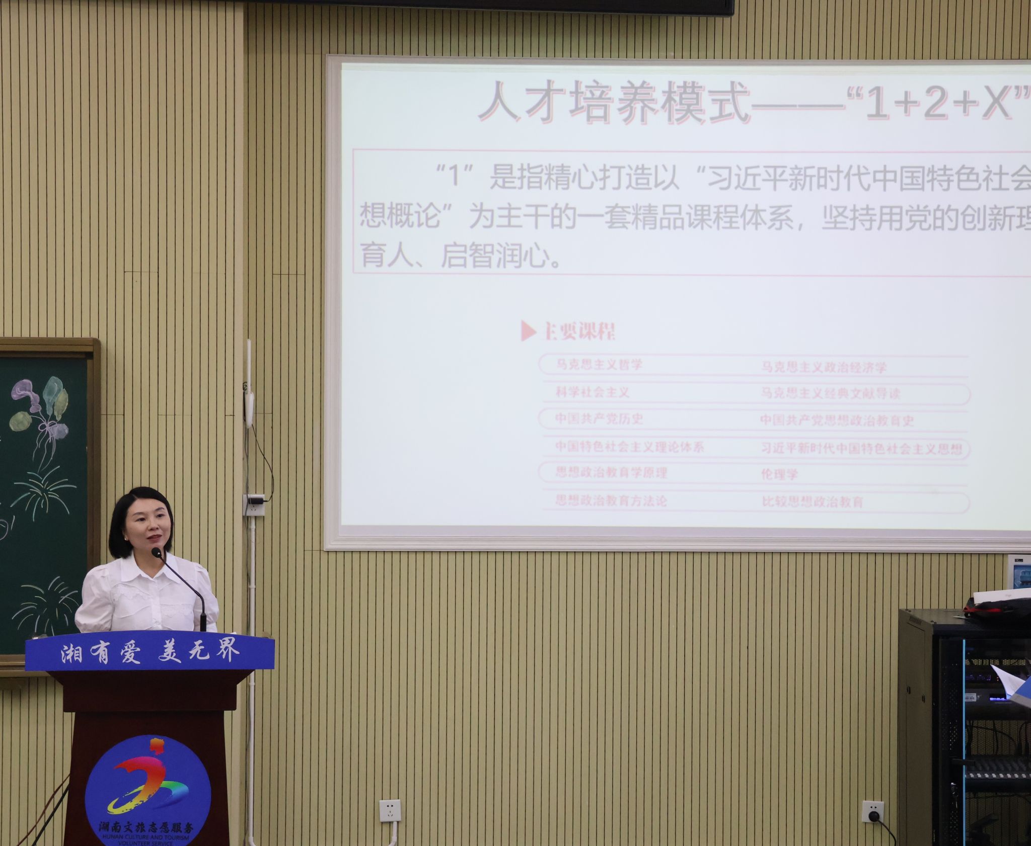 思想政治教育系主任张晓敏为新生带来思想政治教育专业认知讲座,为新生解读学院“1+2+X”人才培养模式,勉励同学们以专业学习打牢根基、深根固本,利用多元化学习提高个人素质、保持冲劲、敢想敢干。