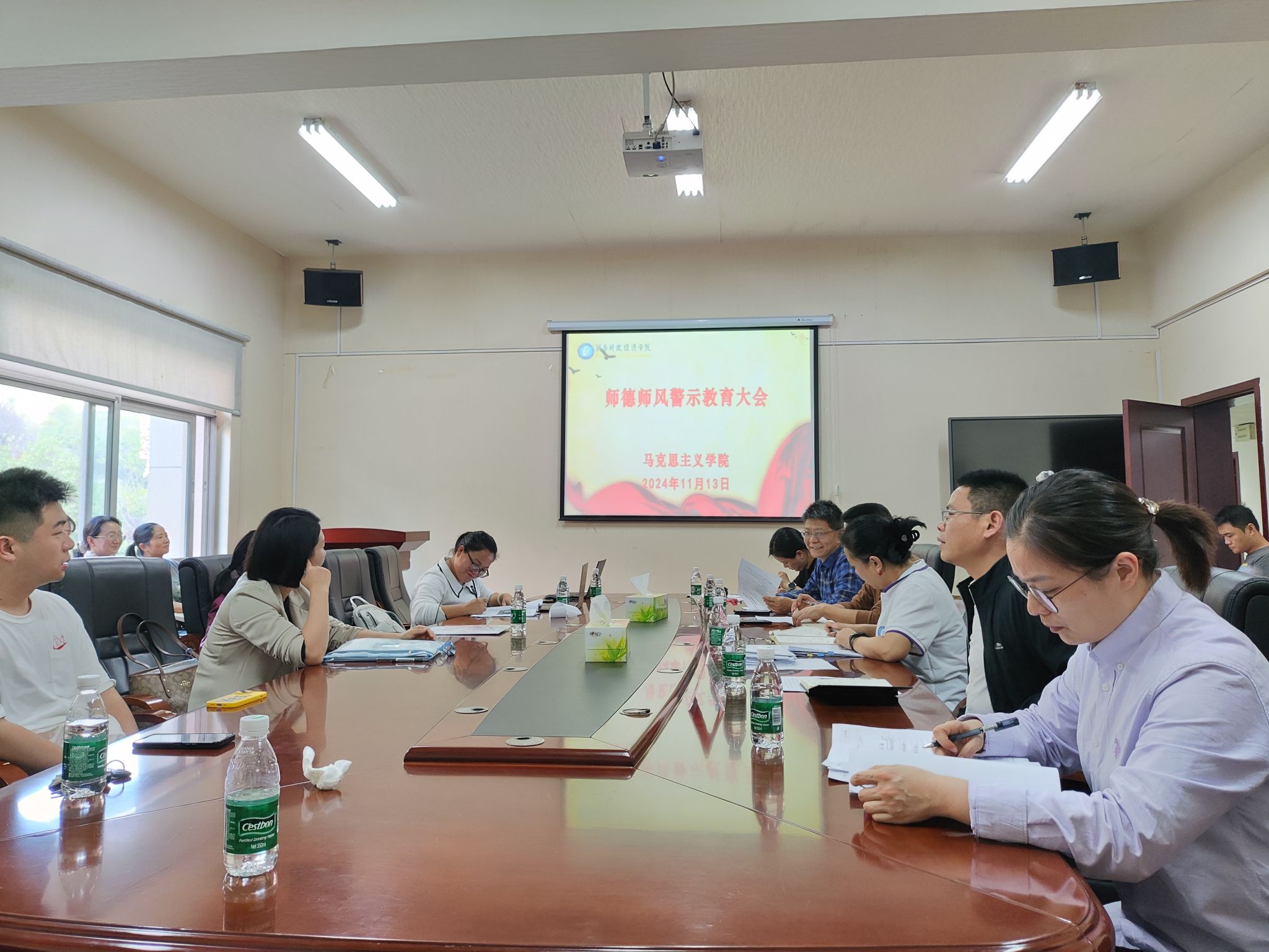 为深入贯彻党的教育方针,加强教师队伍建设,提升教职工的政治理论素养和师德水平,2024年11月13日,马克思主义学院在办公楼215办公室组织开展了系列政治理论学习和师德警示教育活动,马克思主义学院全体教职工参加。此次活动采取了集中学习、个人自学相结合的方式,确保每位教职工都能深入参与,切实提升学习效果。