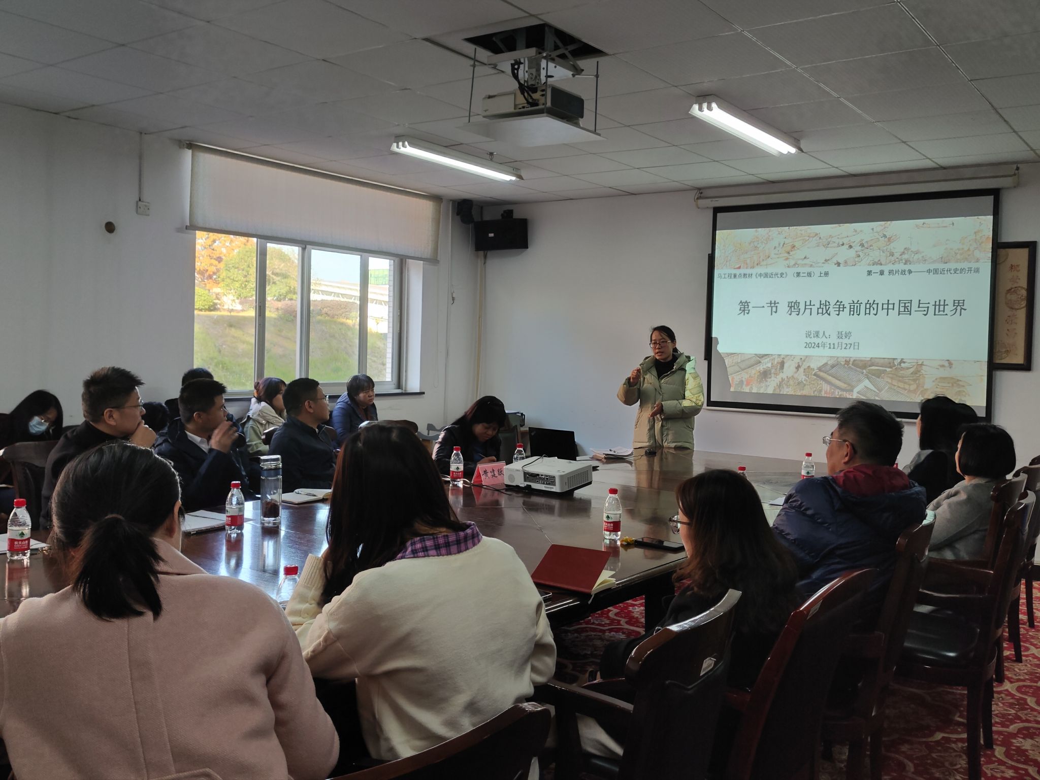 聂婷老师以《鸦片战争前的中国与世界》(《中国近代史纲要》上册第一章)为题进行说课展示。此次说课聚焦于该章节的核心内容,通过精心设计的教学环节与方法,展现了如何引导学生深入理解鸦片战争前中国与世界的复杂局势。说课结束后,众多经验丰富的老师对聂老师教学设计中的亮点和不足提出了自己的思考与建议。