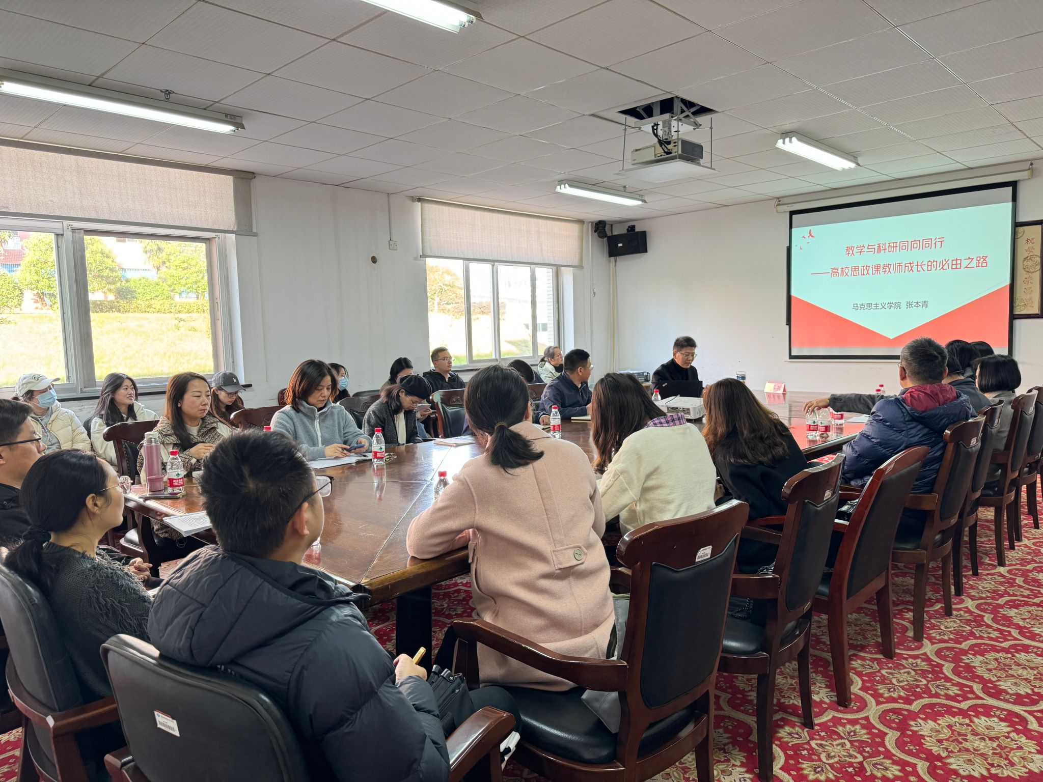 11月27日下午,我院在办公楼515会议室组织开展“骨干讲课 全员磨课”系列活动。张本青老师做了题为“教学与科研同行——高校思政课教师成长的必由之路”的主题分享。张本青老师首先通过分享自身对教学与科研同向同行理念的深入思考与成功实践,强调教学与科研同行的必要性和必然性。张本青老师提出,教师要树立学科自信,课程设计的导入应立意高远,互动环节要激发学生思考,案例选择注重时效辅助理解,课堂管理需张弛有度。同时,要明确教学与科研相辅相成的关系,找准科研发力点,促进科研与教学思考和指导学生的良性互动,实现教学科研协同发展。