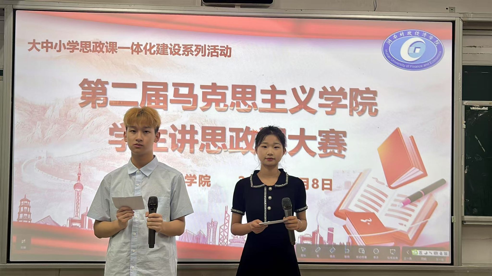 为落实习近平总书记“思政课程要坚持理论性与实践性相统一”的重要指示,扎实推进大中小学思政课一体化建设,马克思主义学院第二届大学生讲思政课比赛于5月8日晚在主校区3111教室顺利举办。