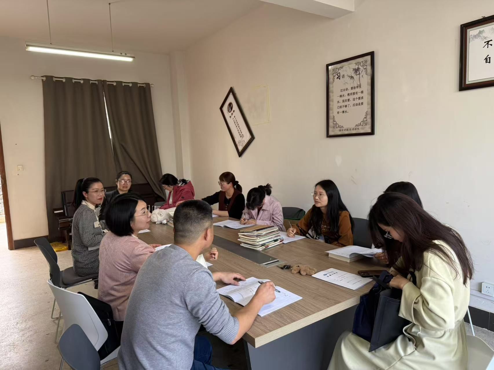 在评课交流环节,杨培根老师高度肯定了周芃君的教学功底,同时建议进一步发掘课程的价值引领作用。周奕老师从教学规范出发,建议设计好板书,帮助学生掌握内容框架。与会教师纷纷发言,就如何丰富教学方法、提升课堂感染力等议题展开热烈讨论。