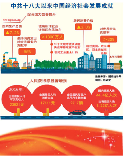 深化改革也深刻改变着国家面貌和人民命运。在改革推动下,4个自由贸易试验区先后挂牌;“三证合一、一照一码”的企业登记模式全面推行,日均催生企业超1.1万家;中国农村累计5564万人摘掉“穷帽子”;大病保险实现全覆盖……