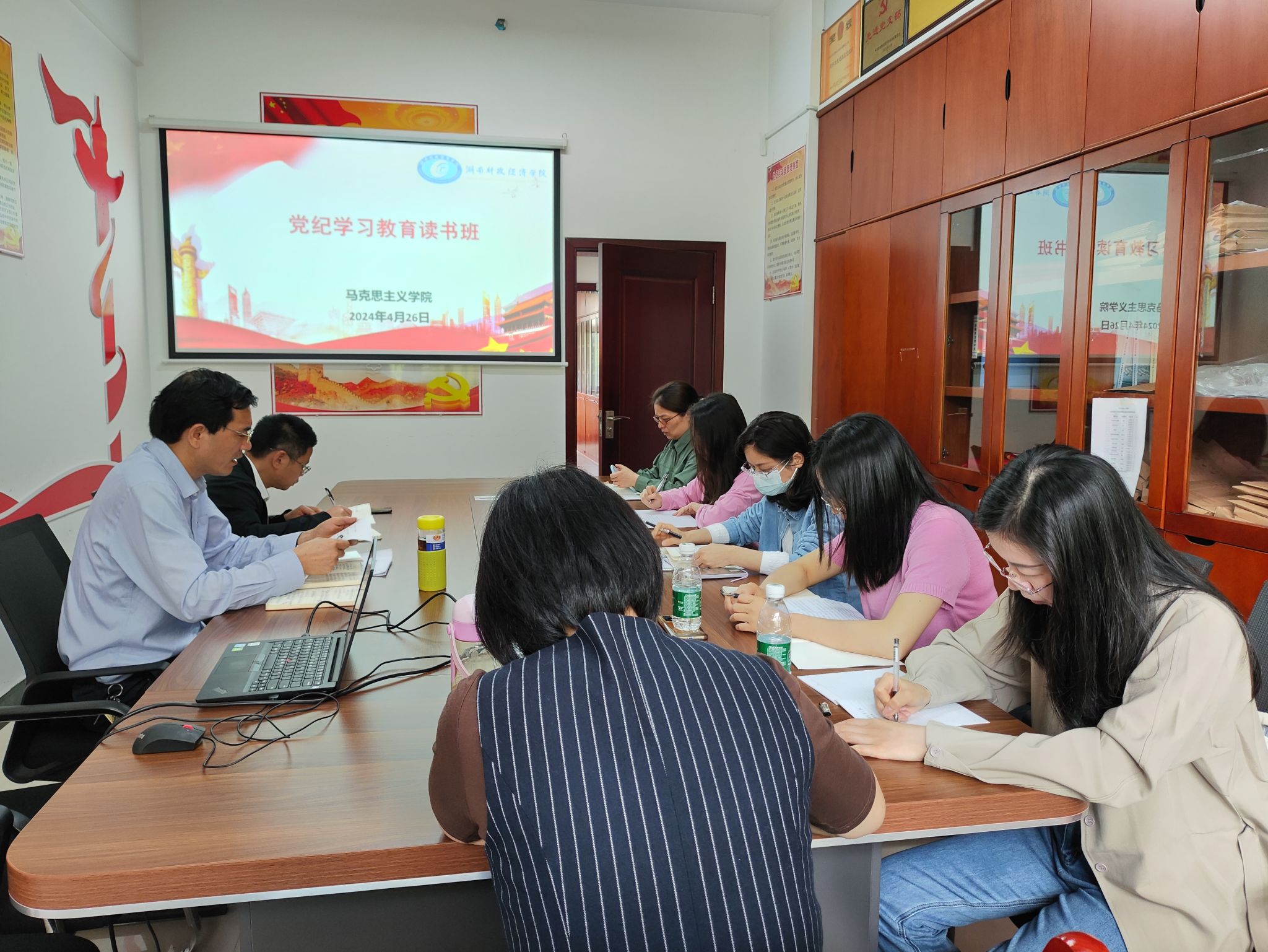 4月26日上午,马克思主义学院直属党支部在主校区办公楼227会议室举办党纪学习教育读书班,深入学习贯彻习近平总书记关于党的纪律建设的重要论述及关于党纪学习教育的重要讲话和指示精神。院直属党支部书记刘振强主持,学院党政领导班子成员、各办主任及教师代表参会。