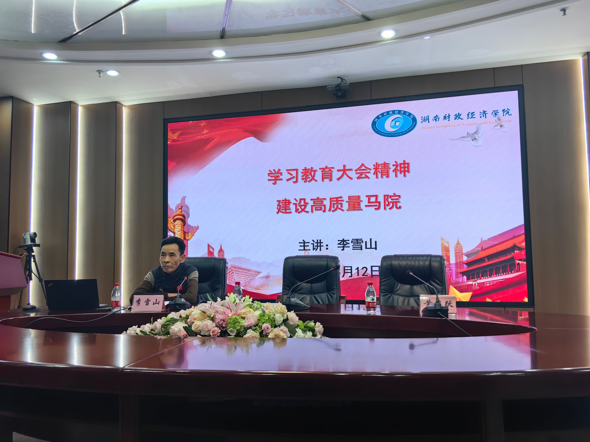 为深入贯彻落实全国教育大会精神,推动思政课教育教学改革创新,促进马克思主义学院高质量发展,3月12日下午,校纪委书记李雪山在办公楼五楼视频会议室为马克思主义学院全体师生党员讲授“学习贯彻教育大会精神,推进高质量马院建设”专题党课。