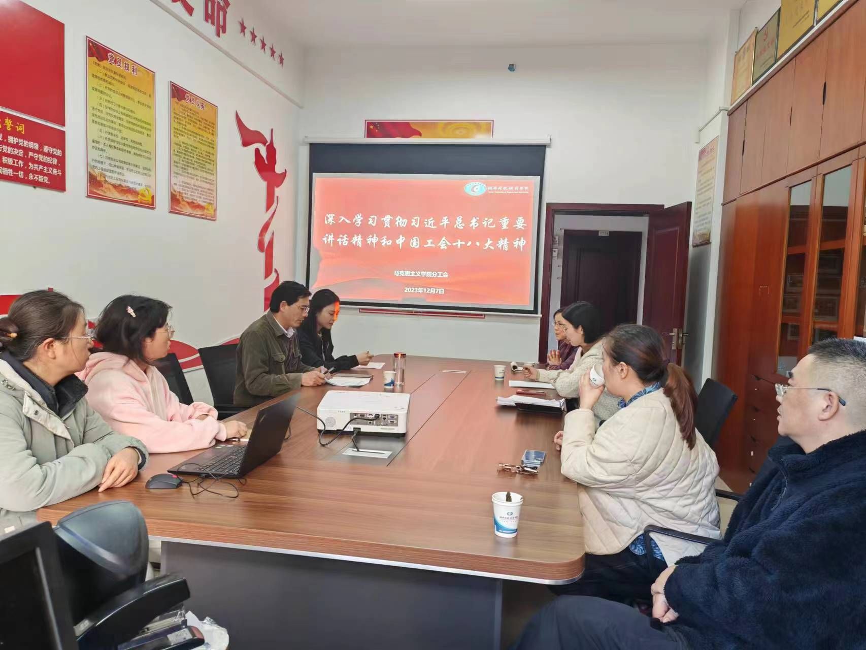 12月7日下午,马克思主义学院分工会在主校区办公楼227会议室举行教职工大会,深入学习贯彻习近平总书记重要讲话精神和中国工会十八大精神。院分工会主席刘振强主持会议。