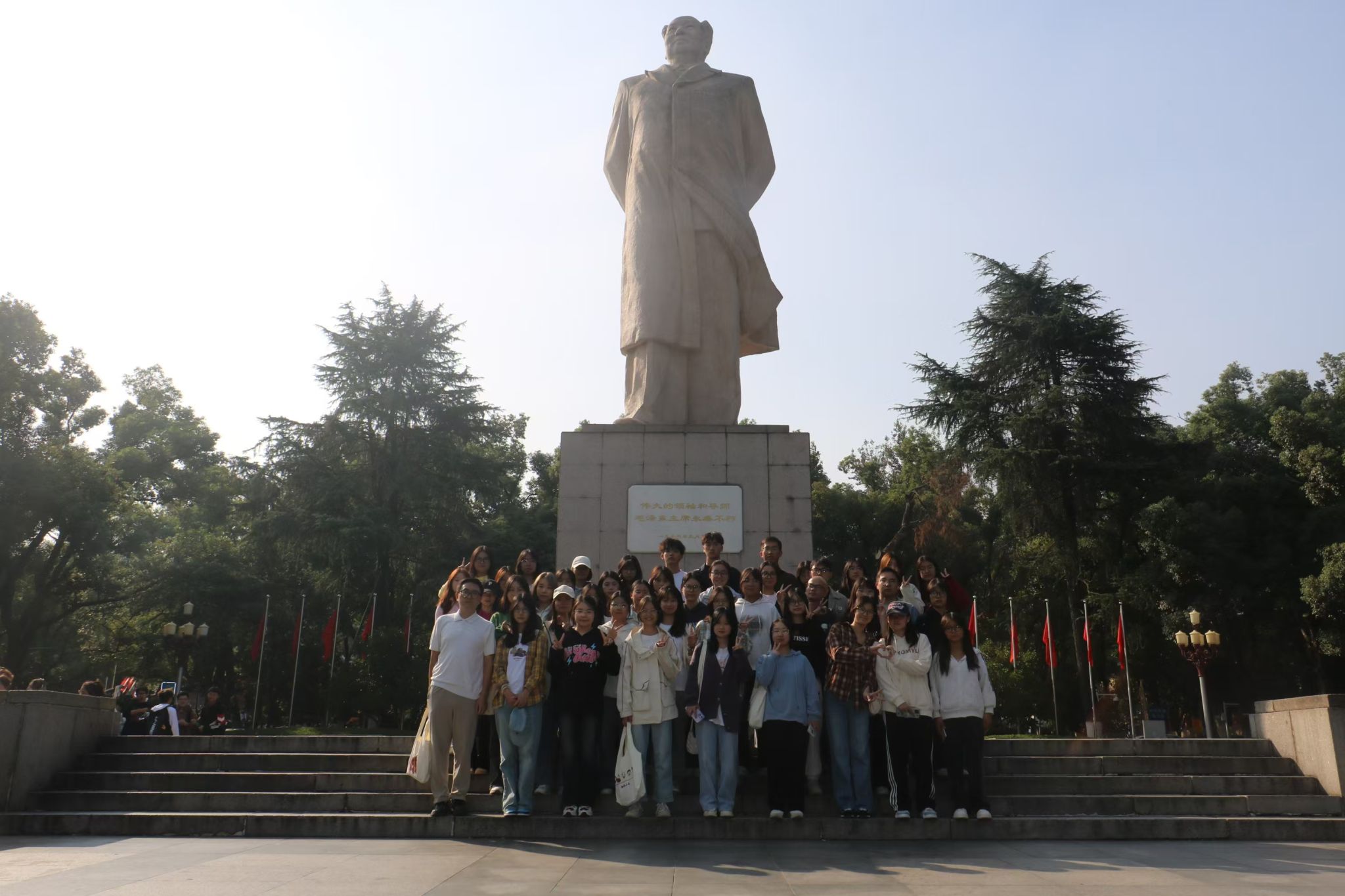 活动当天,24级思政教育一班的师生们走进了湖南大学。在东方红广场,同学们被这里庄重而神圣的氛围深深感染。辅导员苏扬波简要介绍了广场的历史背景与象征意义,引导大家深切体会革命先烈的伟大精神,并在广场前合影留念。