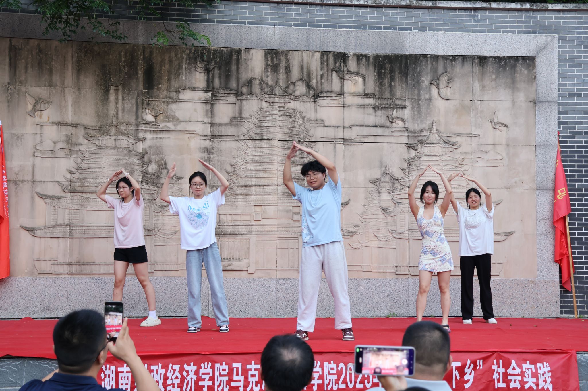 接着,“青马志行”队演唱温暖治愈的《肆意生花》歌曲,向村民们道出了绵长温柔的陪伴之情。由“青马志行”队伍成员和当地村民组成的“飞哥小分队”,以一曲《水手》搭建青年朋友情感交流的桥梁,生动诠释了团结协作的精神。《闪耀歌曲》的激情展现再次点燃晚会气氛,最后经典花鼓戏《刘海砍樵》的精彩表演为本次晚会画上圆满句号。