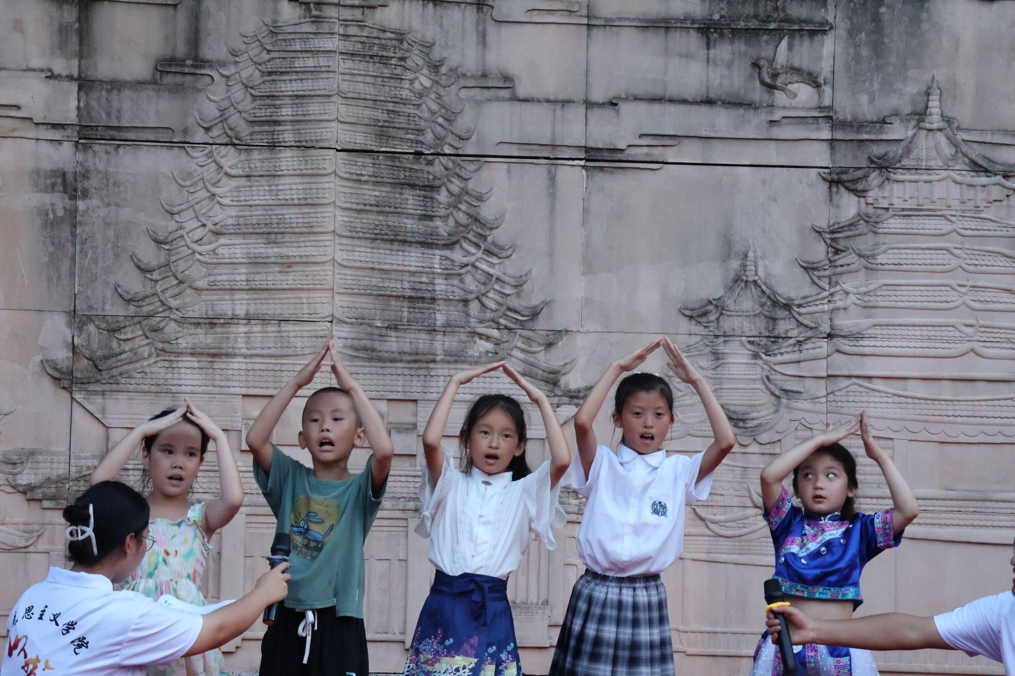 (图为青叶树村孩子们表演《我爱祖国》)