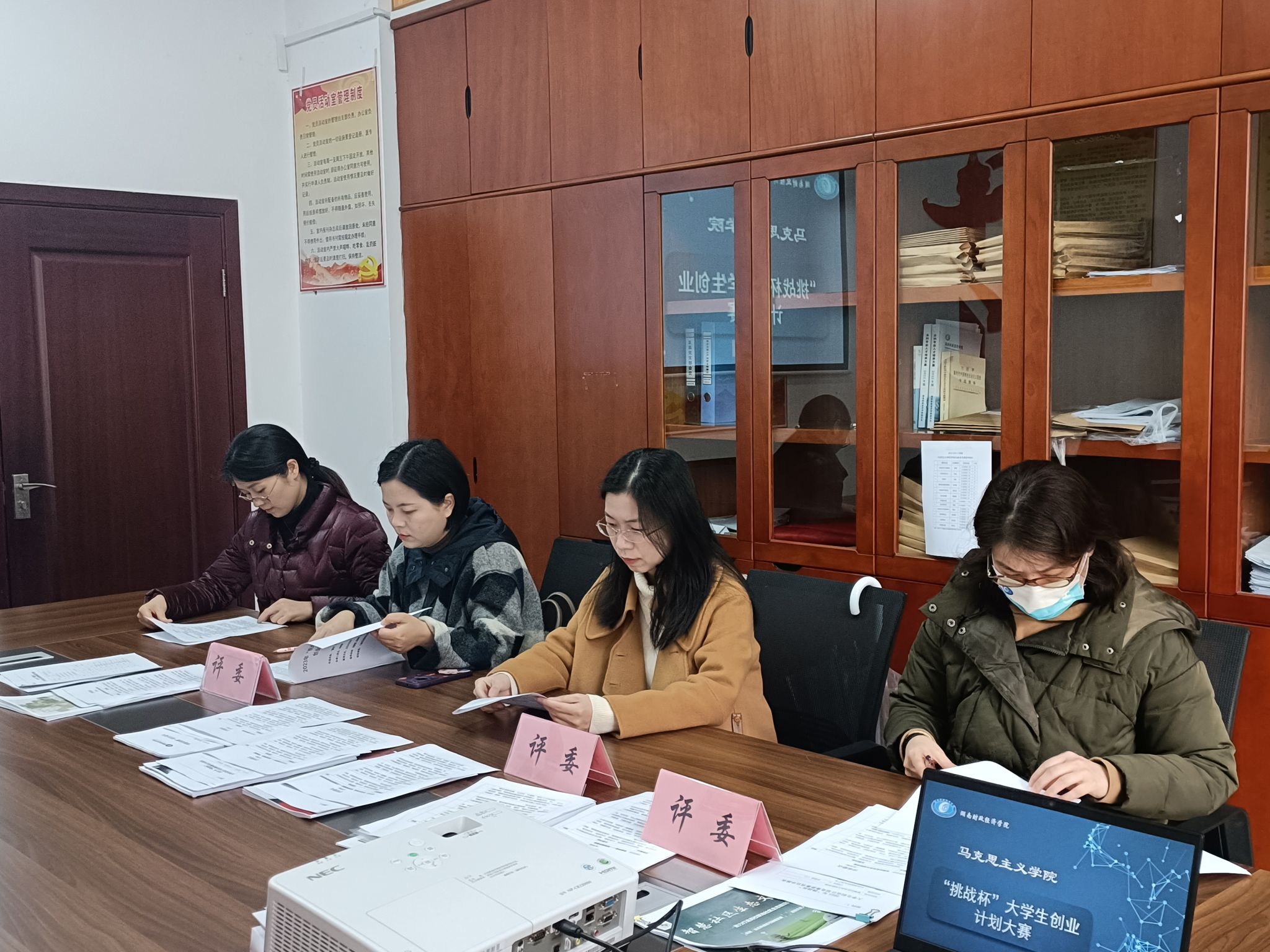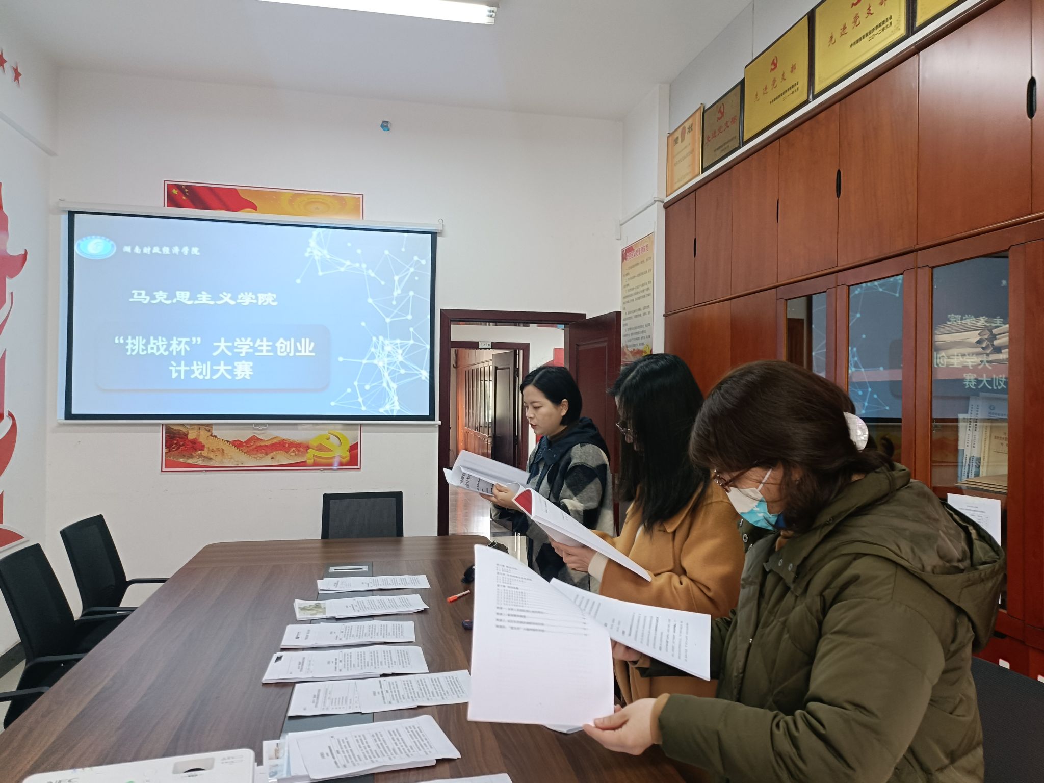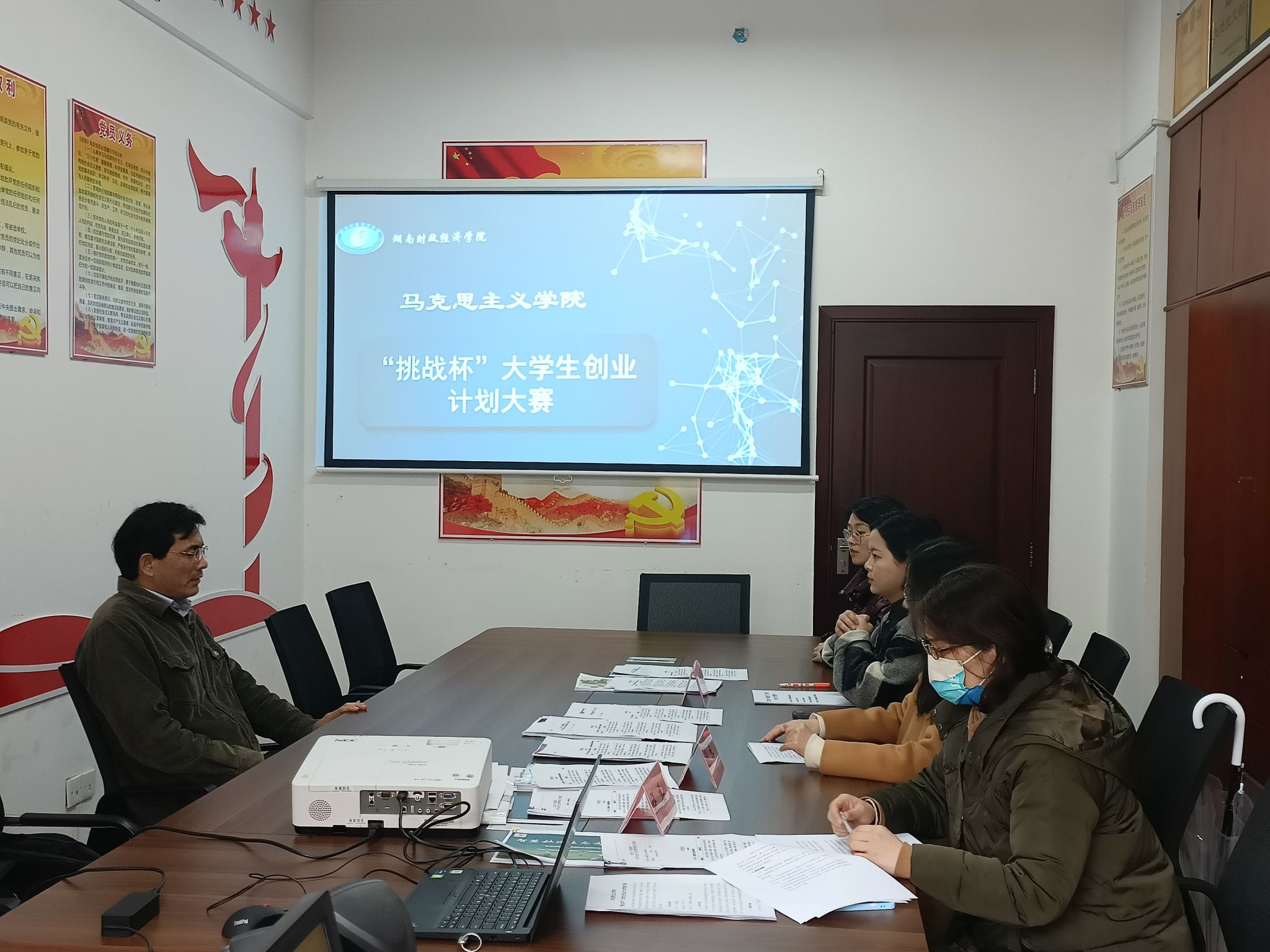 为提高“挑战杯”大学生创业计划竞赛作品的质量,增强同学们的创业意识和创新精神,近日,马克思主义学院于办公楼227会议室举办“挑战杯”大学生创业计划大赛。此次院赛由院直属党支部书记刘振强主持,尹文芳、周奕、周芃君三位老师担任评委,辅导员周雄艳参与。