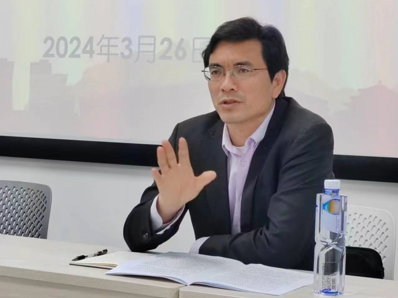 3月26日,马克思主义学院在雷锋校区L1512教室开展深入学习习近平总书记在湖南考察时的重要讲话和在新时代推动中部地区崛起座谈会上的重要讲话活动。学院直属党支部书记刘振强主讲,班主任阳海飞、辅导员汤雷以及2023级思想政治教育专业全体学生参加。会议由学工办主任周雄艳主持。