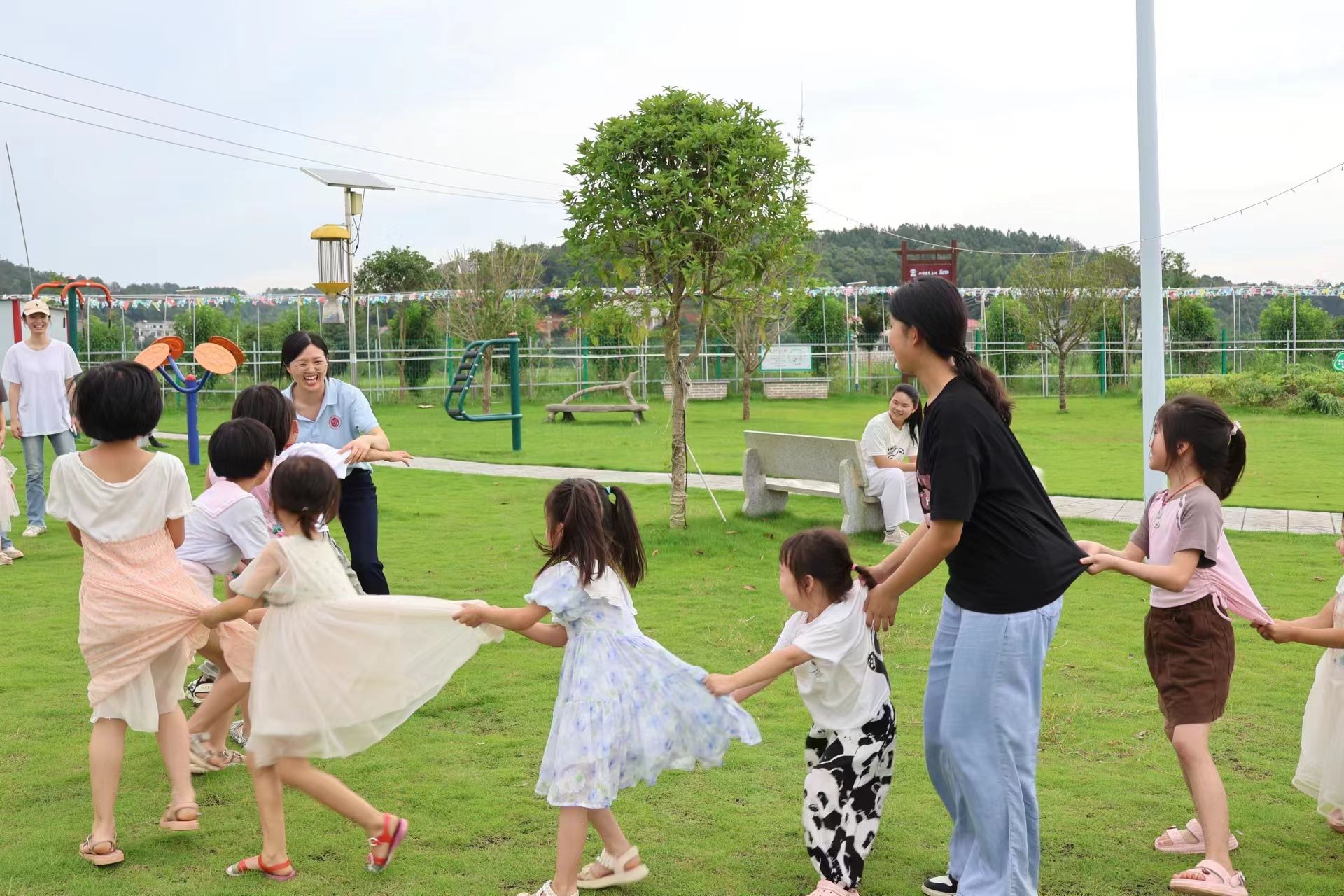 秉持在游戏中增长信心、在愉悦中结交朋友、在团队中提升能力、在合作中凝聚力量的理念,通过寓教于乐的方式,实践团队带领孩子们开展素质拓展活动,与小朋友同玩“老鹰捉小鸡”“123木头人”“丢手绢”等经典游戏,多样化的素质拓展活动拉近了人际距离,增强了团队凝聚力,也培养了小朋友热爱集体的意识。