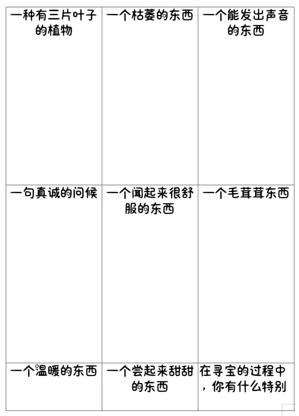 寻宝之旅覆盖视觉、嗅觉、味觉等多感官体验,在寻宝过程中,同学们细致地观察每一片树叶的轮廓,体悟每一件物品的温度,不仅提升了观察力和实践技能,也对周围的自然环境有了更深刻的认识。