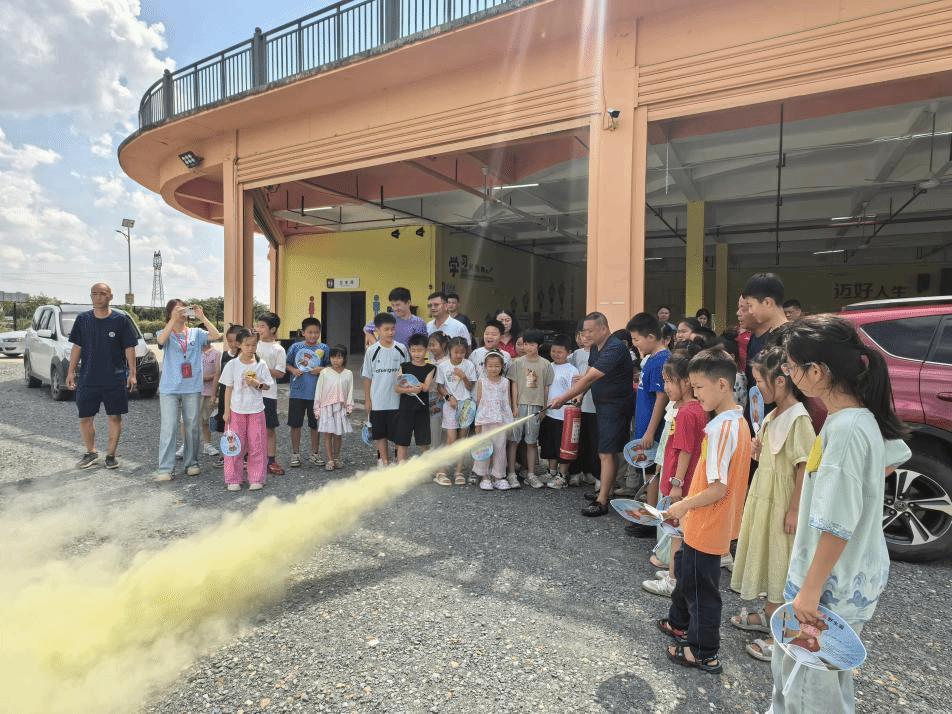 在防火安全教育环节,救援队员现场展示消防器具,让学生近距离观察其使用细节与规范,并安排学生亲手操作体验,助力学生加深对消防知识的记忆与理解。真实的场景和实操体验吸引了学生的高度关注,有效弥补了学生火灾知识的不足,强化了学生的防火意识和应对能力。