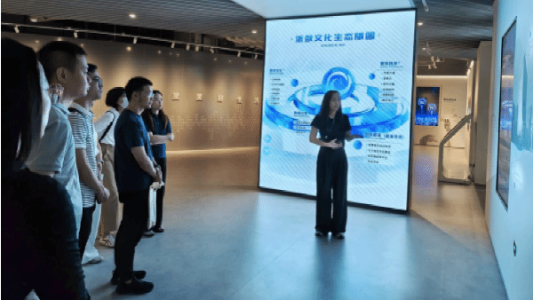 7月22日上午,调研团抵达浙数文旅发展(浙江)有限公司。作为浙江省内领先的数字文化产业公司,浙数文旅在智慧旅游领域有着深厚的积累与丰富的实践案例。浙数文旅副总经理靳畅向调研团详细介绍了浙江省综合文旅服务平台“游浙里”的建设经验,以及企业如何利用大数据、云计算、人工智能等现代信息技术,为游客提供个性化、智能化的旅游服务。双方就智慧旅游平台的构建、运营及优化策略进行了深入交流,以浙江省文旅综合服务平台“游浙里”为例,为“又湘游”平台的智能化升级提供了宝贵思路。