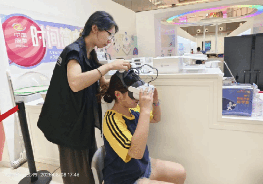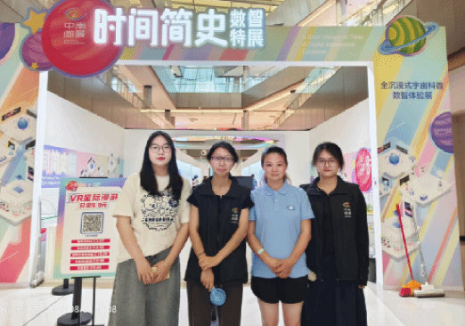 走访期间,陈洁深入《时间简史数智特展》项目展厅、项目运营等实习生工作一线,通过现场观察、交流访谈,详细了解学生的岗位适应情况、具体工作内容及阶段性实践成果。在VR体验展区,陈洁驻足观察学生操作环节—实习生们正熟练运用VR设备为顾客提供沉浸式导览服务、细致地为顾客佩戴调试VR眼镜、耐心讲解虚拟场景交互方式,帮助游客切换不同观展模式。陈洁对同学们将课堂所学的“技术+服务”理念转化为实操能力表示赞许。