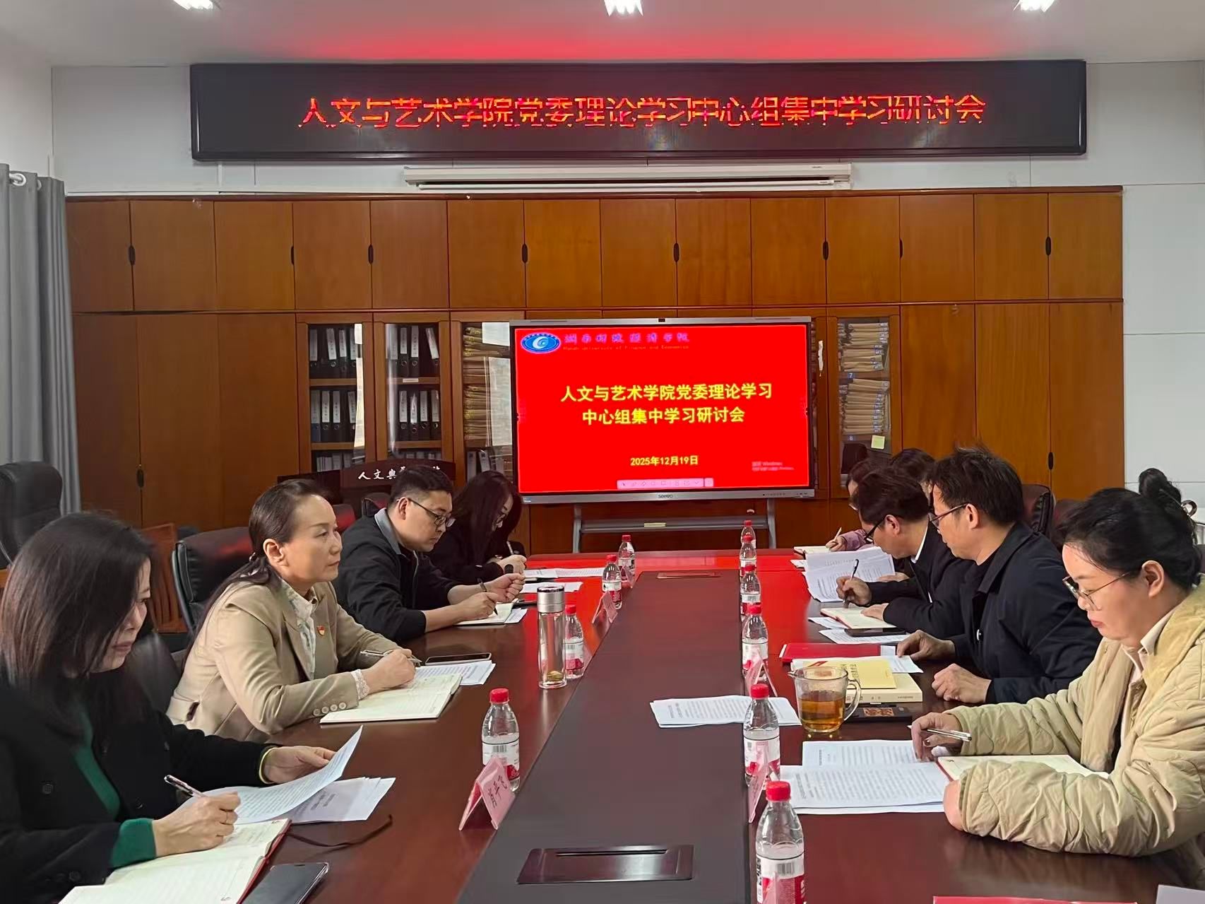 (本网讯)12月19日下午,校党委副书记苏玲巡听旁听人文与艺术学院党委理论学习中心组学习会,学校巡听旁听工作组成员一同到会指导。会议由学院党委书记葛干忠主持,学院党委委员、班子成员参加了学习会。