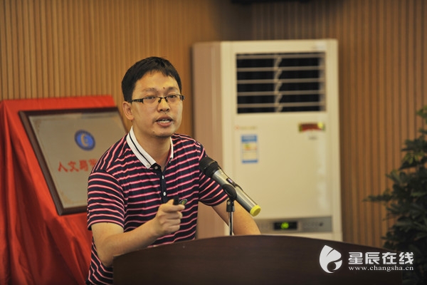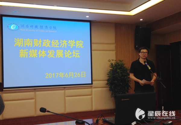 (湖南日报党组成员、副总编辑颜斌分享了《新湖南的融媒体战略》。)