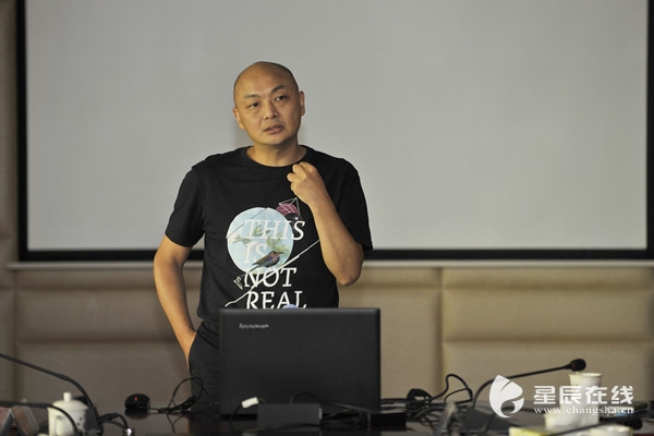 (星辰在线党委副书记、总编辑何旭畅谈了《城市新闻网站的融媒体+》的布局。)