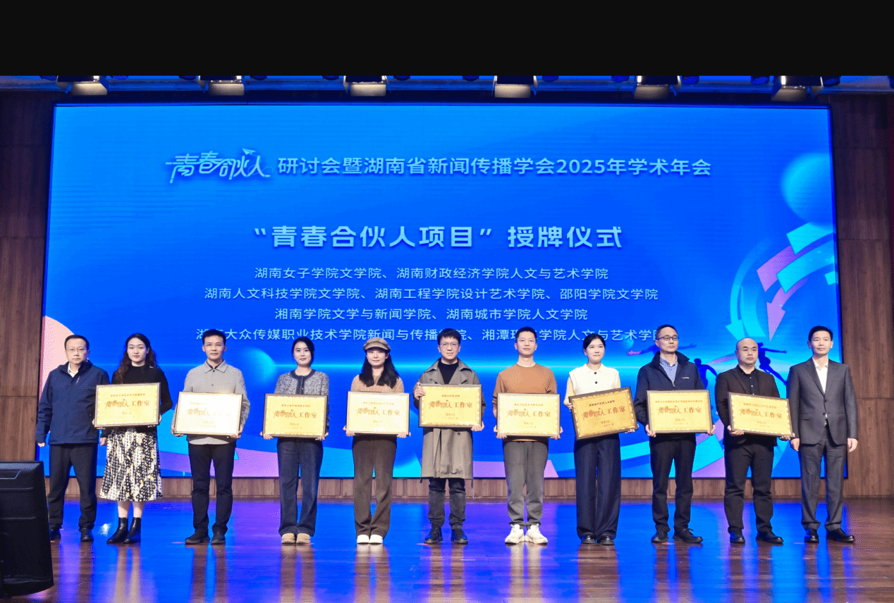 (本网讯)11月2日,由湖南日报社、湖南省新闻传播学会主办,新湖南客户端、湖南大学新闻与传播学院承办的“青春合伙人”研讨会暨湖南省新闻传播学会2025年学术年会在新湖南大厦举办。人文与艺术学院网络与新媒体系主任李成家携网络与新媒体、汉语言文学专业学生代表参会,与业界、学界代表共话智媒时代新闻传播新力量,共谱协同育人的新篇章。