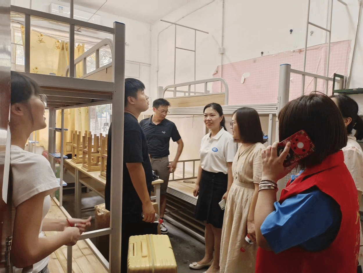 9月6日下午,学院院长林铁、党委副书记杨艳带领学院领导班子、学工办、辅导员走访学生寝室。