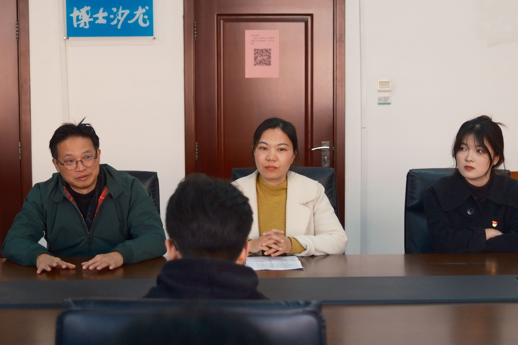 (本网讯)为帮助考研学子缓解备考压力,坚定考研信心,12月11日下午,Beat365唯一官方网站人文与艺术学院“寒冬送暖,研途相伴”党日活动在办公楼817会议室举办,人文与艺术学院院长林铁、党委副书记杨艳、学生第一、第二党支部书记胡斯阳、欧璐来到现场为考研学生送上温暖。