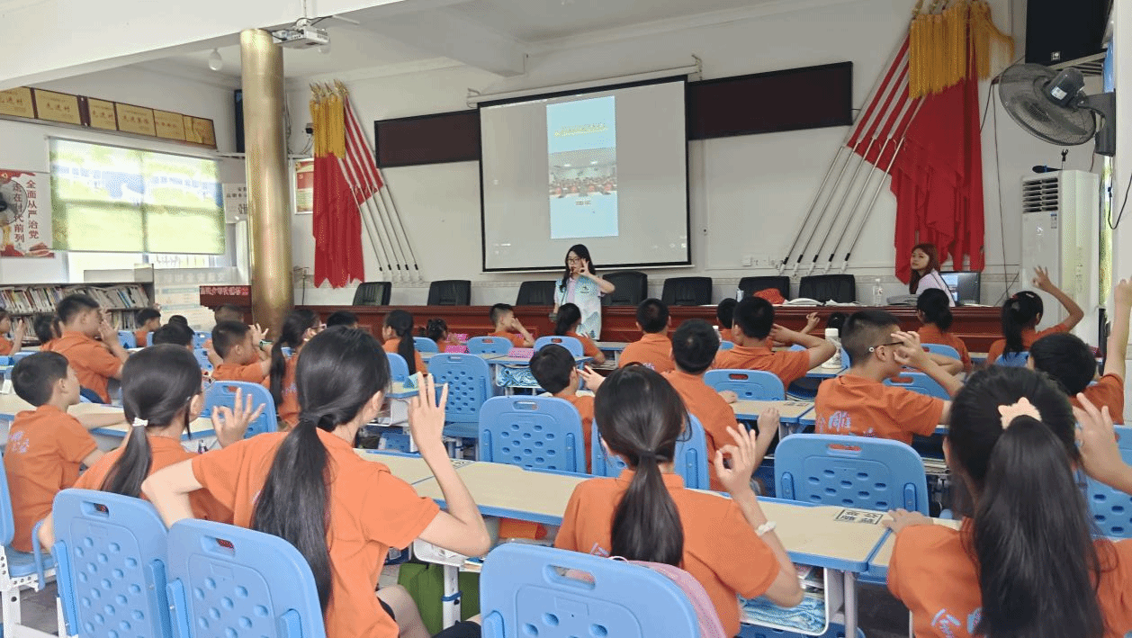 午后,舞蹈课堂接力上演。“志愿先锋”队成员龙诗奕老师带来《Yes!OK!》手势舞教学,把舞蹈拆解为简单易懂的手部动作与肢体配合,用“先比‘耶’再击掌”的分步引导,让孩子们从羞涩观望到大胆跟跳。随着欢快的旋律,孩子们的小手在空中划出整齐弧线,眼神里闪烁着投入的光芒,童真在舞动中肆意绽放。