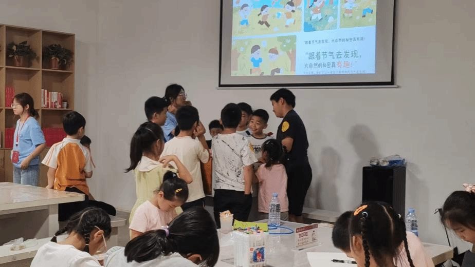 在课堂与自然的相互交织中,二十四节气小课堂以“春分立蛋原理”“清明插柳寓意”等问题为切入点,引导孩子们在观察与思考中探索节气奥秘,解锁古代劳动人民智慧的结晶孩子们围坐成圈,目不转睛地看着志愿者操作讲解,不时举手提问。当看到鸡蛋真的在桌面上立起来时,不禁惊呼:“原来古人这么厉害!”课堂尾声,孩子们跟着志愿者齐声背诵二十四节气歌,稚嫩的声音在课堂回荡。