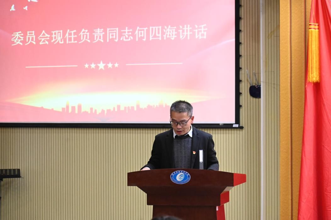 人文与艺术学院新一届委员会成员何四海发言。何四海表示,新一届学院党委会将紧紧围绕学院今后五年发展目标,加强学习,努力提升综合能力;维护大局,加强班子团结协作;强化担当,全面落实党建工作责任。坚定信心、聚焦内涵发展,推进学院事业发展再上新台阶。