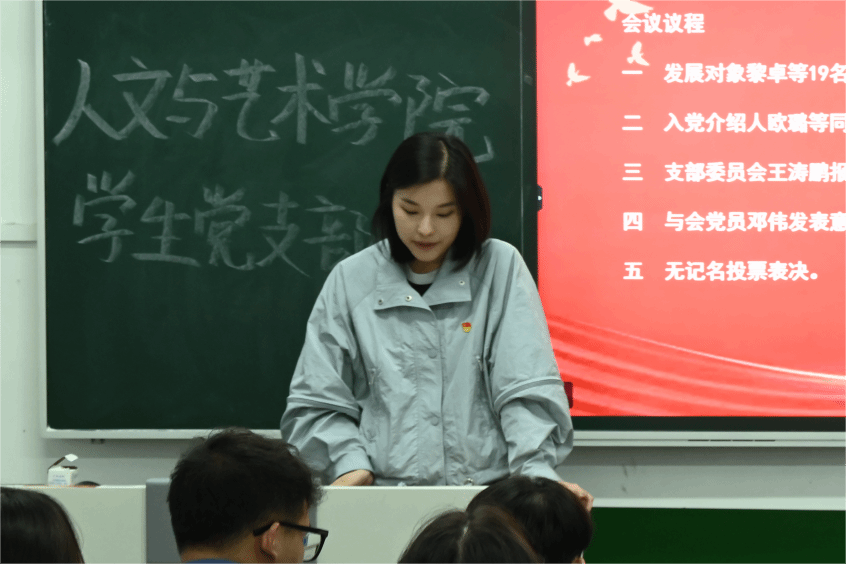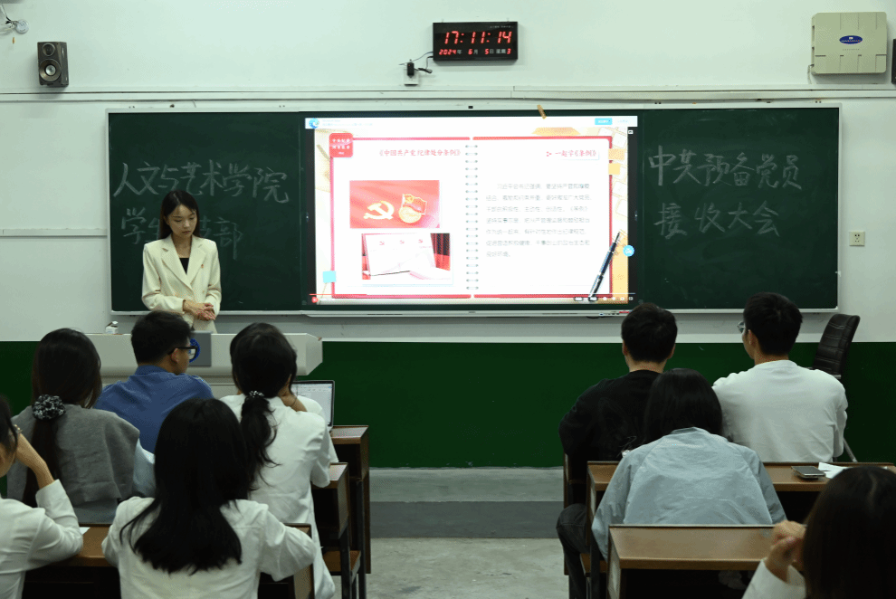 (本网讯)为进一步加强党组织建设,为党组织注入新鲜血液,增强党组织凝聚力和战斗力,6月5日16:00,人文与艺术学院学生党支部在1104教室召开预备党员接收大会,本次会议由学生党支部副书记李德宏主持。