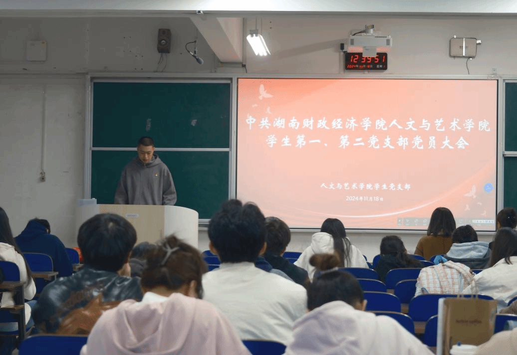 (本网讯)为贯彻落实发展党员要求,增强党支部凝聚力和战斗力,11月18日,人文与艺术学院学生第一、第二党支部召开党员大会,研究讨论预备党员转正、预备党员接收和支部委员补选事宜。学生第一党支部书记胡斯阳、第二党支部书记欧璐出席会议,学生党支部全体党员参加会议,会议由学生第一党支部副书记李德宏主持。