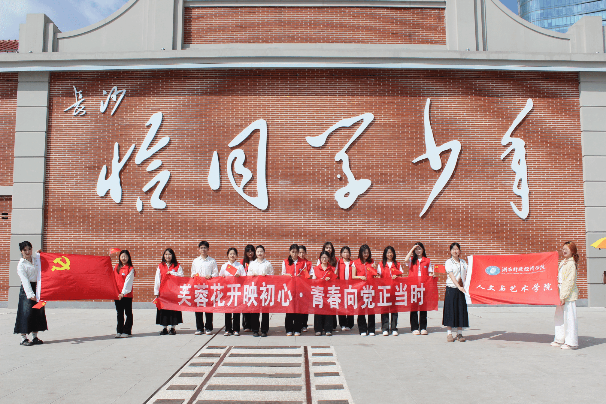 (本网讯)为贯彻落实党的二十大、二十届三中全会精神和团十九大精神,发挥党建带团建引领作用,进一步延伸党建带团建工作触角,4月25日,人文与艺术学院学生第一、第二党支部与团学会带领学生党员与团学成员,在“恰同学少年广场”共同开展“党建带团建”主题活动,推动党、团之间链条相衔接、相贯通,有效铸牢中华民族共同体意识。