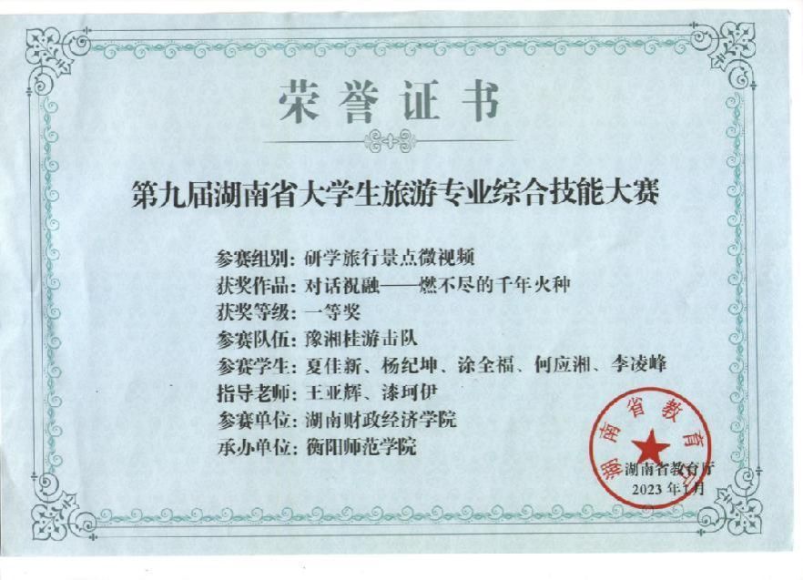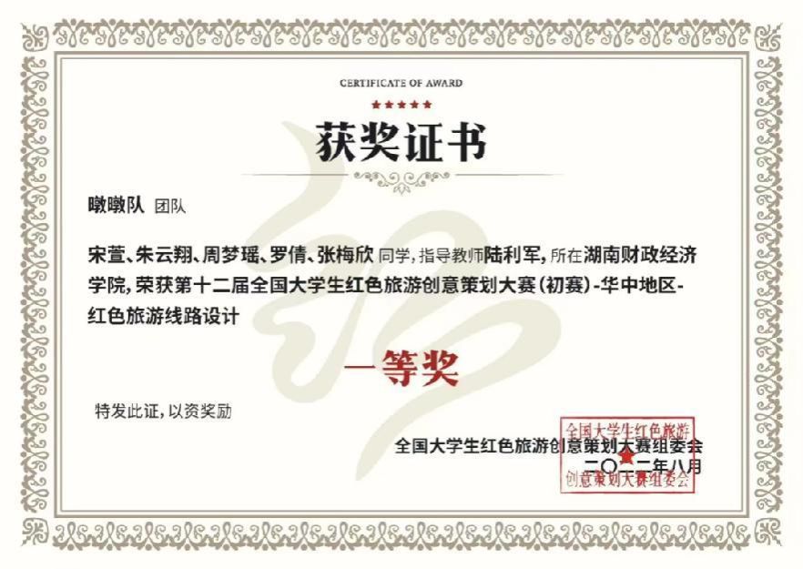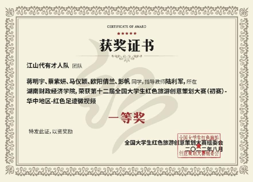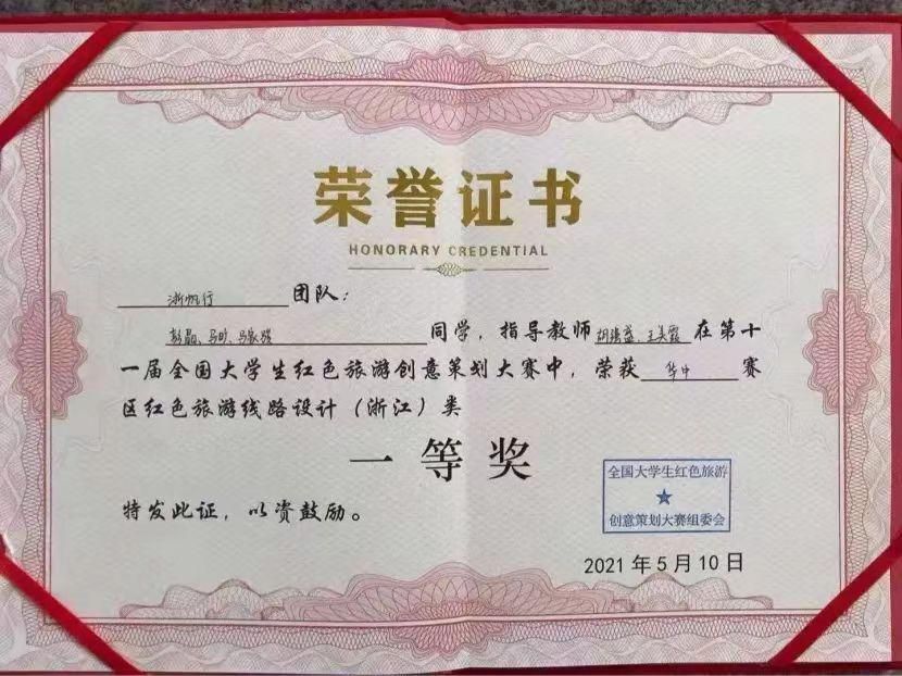 Beat365熊一郎同学获得第十三届全国大学生红色旅游创意策划大赛最佳风采奖
