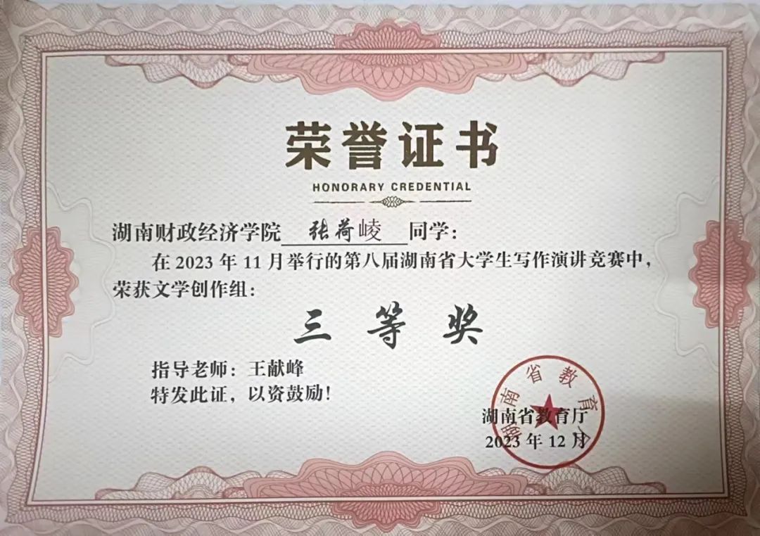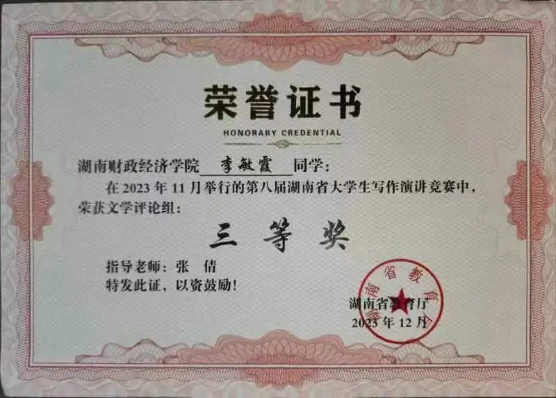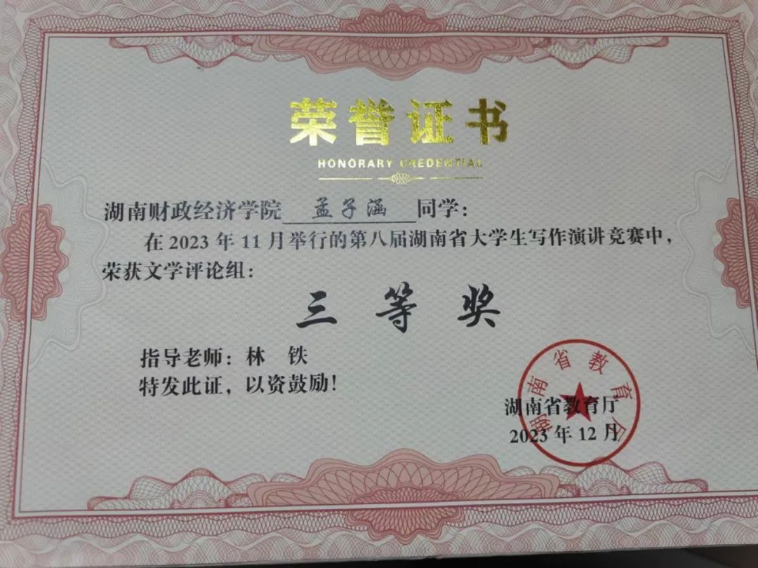 专业学生获全国大学生语言文字能力大赛省赛二等奖