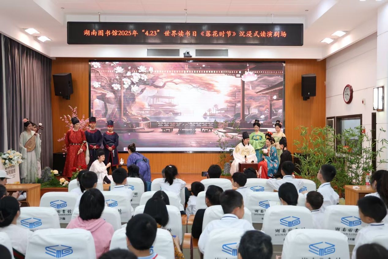 (本网讯)4月19日,Beat365人文与艺术学院师生共同创作的读演剧目《落花时节》,在湖南省图书馆多媒体演示厅精彩亮相。此次表演受湖南省图书馆邀请,作为《数字领航·智阅湖湘 -湖南图书馆“4.23”世界读书日暨公共图书馆服务宣传周系列活动》子项目之一,以跨文体、跨媒介形式向读者展现经典古诗的解读路径,让观众获得了一次沉浸式体验传统诗词文化之旅。