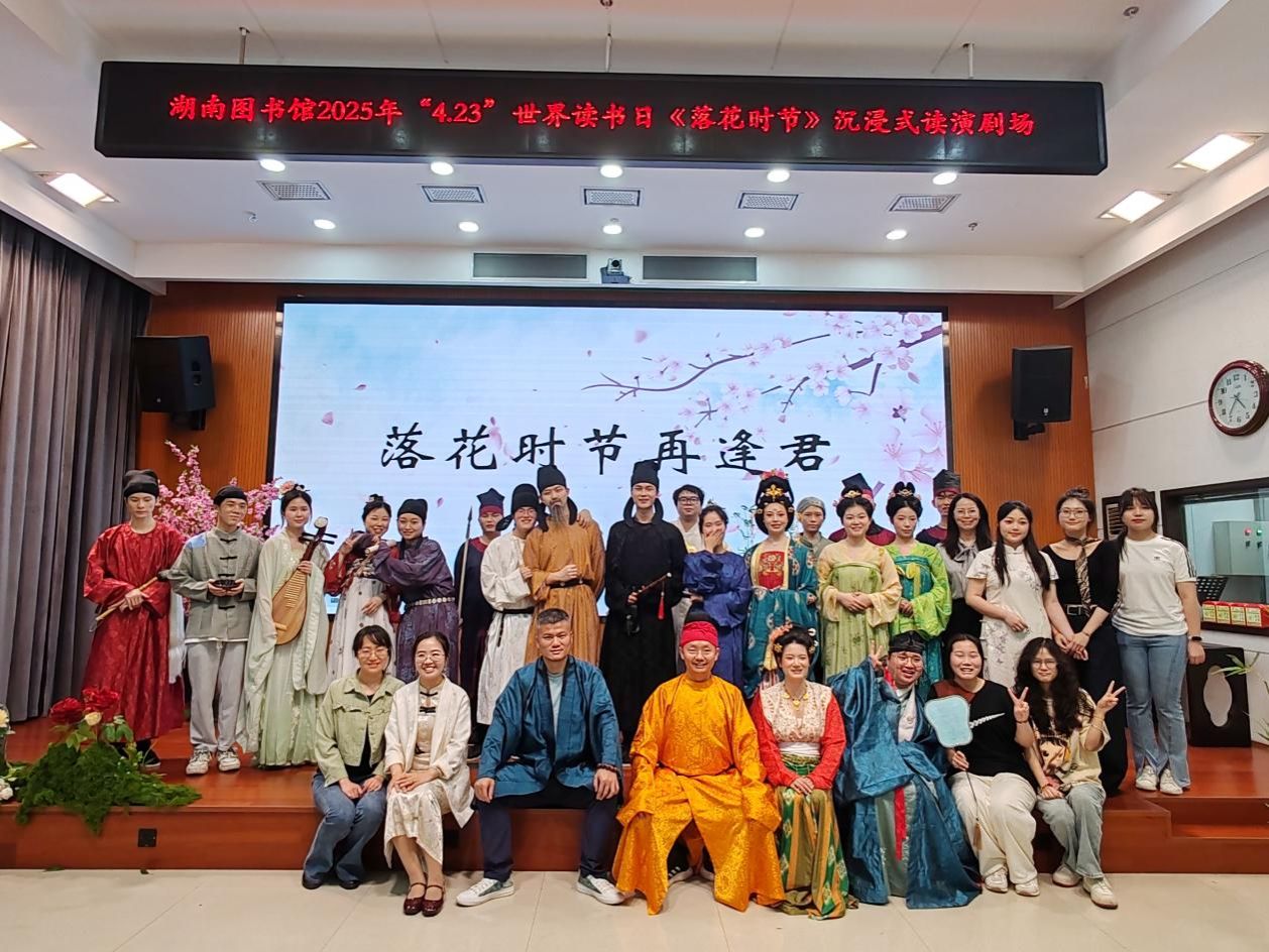 2025年4月19日,Beat365唯一官方网站与省图书馆联合举办的“诗城长沙·落花时节”剧场在经久不息的掌声中落下帷幕。活动的主创者——Beat365人文与艺术学院的唐孕莲老师,与师生团队合影定格下这个闪耀的瞬间。这场持续两年的文化盛宴,正是唐孕莲二十年如一日深耕教育事业的生动展现。