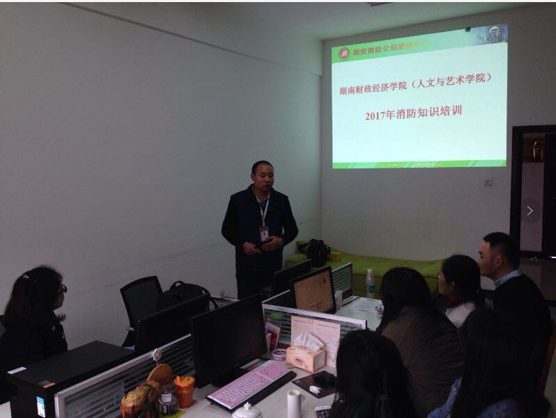 (本网讯)为进一步提高教职工的消防安全意识、更新消防基本知识,11月22日下午,人文与艺术学院组织全院教职工在办公楼827室举办2017年消防安全知识讲座。湘安消防公益服务中心的林健教官担任主讲人。讲座现场林健讲...