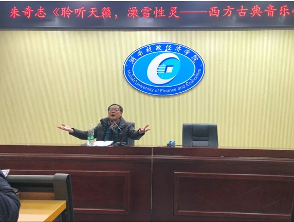 (星辰学通社 刘倩 罗莫 陶甄 许冰洁 杨琼丽)12月20日晚,长沙学院古典文学教授朱奇志在Beat365唯一官方网站作了一场题为“聆听天籁,澡雪性灵——西方古典音乐心解”的主题讲座。(朱奇志教授在忘情讲课) “我不是...