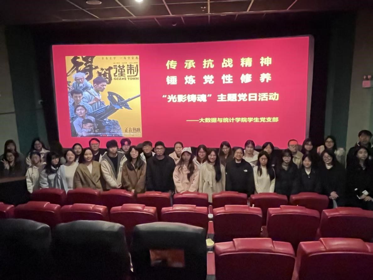 为纪念中国人民抗日战争暨世界反法西斯战争胜利80周年,进一步激发党员干部爱国情怀和奋斗精神,大数据与统计学院党总支于9月5日下午组织开展“观影铸魂”主题党日活动。活动由教师党支部联合学生党支部,组织全体师生党员集体观看了历史题材影片《东极岛》。 影片聚焦抗日战争烽火岁月,以饱含深情的镜头语言,艺术再现了东极岛渔民在民族危亡关头,不顾个人安危,英勇营救“里斯本丸”号沉船英军战俘的感人事迹,生动刻画了普通渔民身上闪耀的人性光辉与家国大义,...