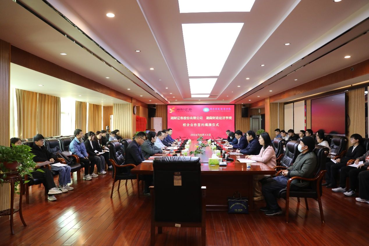 李景生介绍了湘财证券股份有限公司的发展历程、经营业务、战略定位等方面情况,希望双方以共建基地为契机,加强业务对接,持续深化校企合作,更好实现优势互补、资源共享、互利共赢。