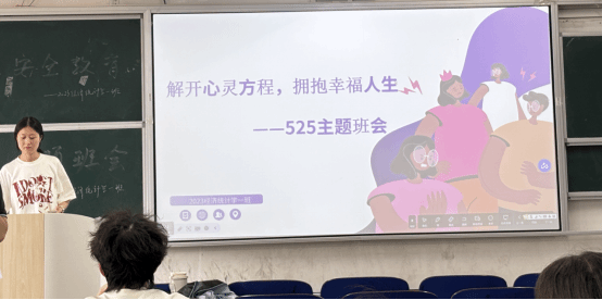 此次班会旨在引导同学们关注心理健康,学会调节情绪,以积极的心态面对学习和生活。班会伊始,主持人以“525”(我爱我)心理健康日的由来为切入点,向同学们阐述了关注心理健康的重要性。周真老师则以“心灵方程”为比喻,生动形象地讲解了心理问题的形成机制和应对方法。重点介绍了情绪调节的技巧,如深呼吸放松法、积极的自我暗示、合理宣泄等,并通过案例分析让同学们更好地理解和应用这些方法。