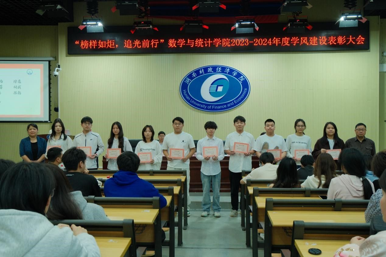 3月24日晚,“榜样如炬 追光前行”数学与统计学院2023-2024年度学风建设表彰大会在第二教学楼2J03学术报告厅隆重召开。数学与统计学院党总支书记王萱,院长尹向飞,副院长吕胜祥等与220余名师生代表齐聚一堂,共同见证荣誉时刻,聆听榜样故事,共话青春担当。