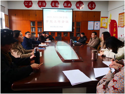 (本网讯)2月19日下午,数学与统计学院在办公楼809会议室召开新学期工作布置会议。会议由学院院长尹向飞主持,学院全体教职员工参会。会议现场尹向飞公布了学院领导班子成员分工情况,并就新学期相关工作作了统筹安...