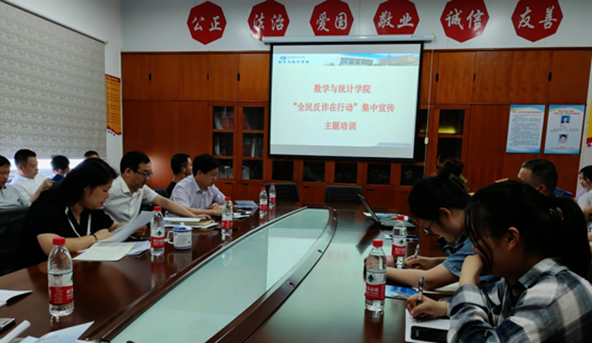 (本网讯)7月10日上午,数学与统计学院在办公楼809会议室开展“全民反诈在行动”集中宣传活动。活动由院党总支书记王萱主持,全院教职工参加。培训现场王萱传达了上级相关文件精神,详细例举十大高发电信网络诈骗类...