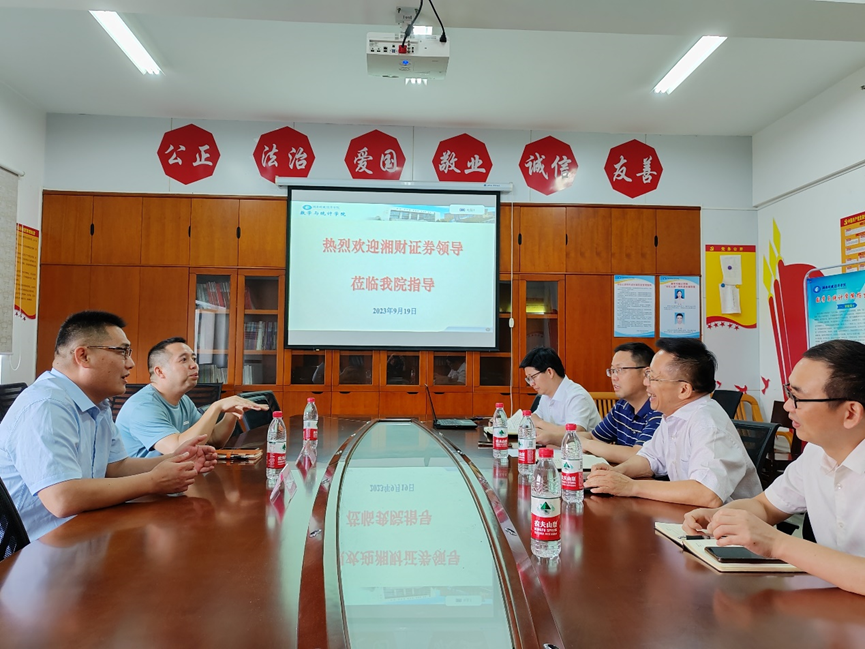 (本网讯)9月19下午,湘财证券股份有限公司湖南区域管理中心基础业务专员兼新民路证券营业部副总经理李健、新民路证券营业部财富总监王周琪来Beat365数学与统计学院就校企合作有关事宜进行座谈交流。数学与统计学院院长...