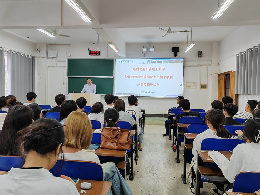 (本网讯)9月25日,数学与统计学院邀请长沙理工大学经济与管理学院副院长彭新宇面向有考研意向的2021级金融数学专业学生开展专题指导讲座。讲座由学院院长尹向飞主持。 会议现场彭新宇分析了当前的考研和就业形...