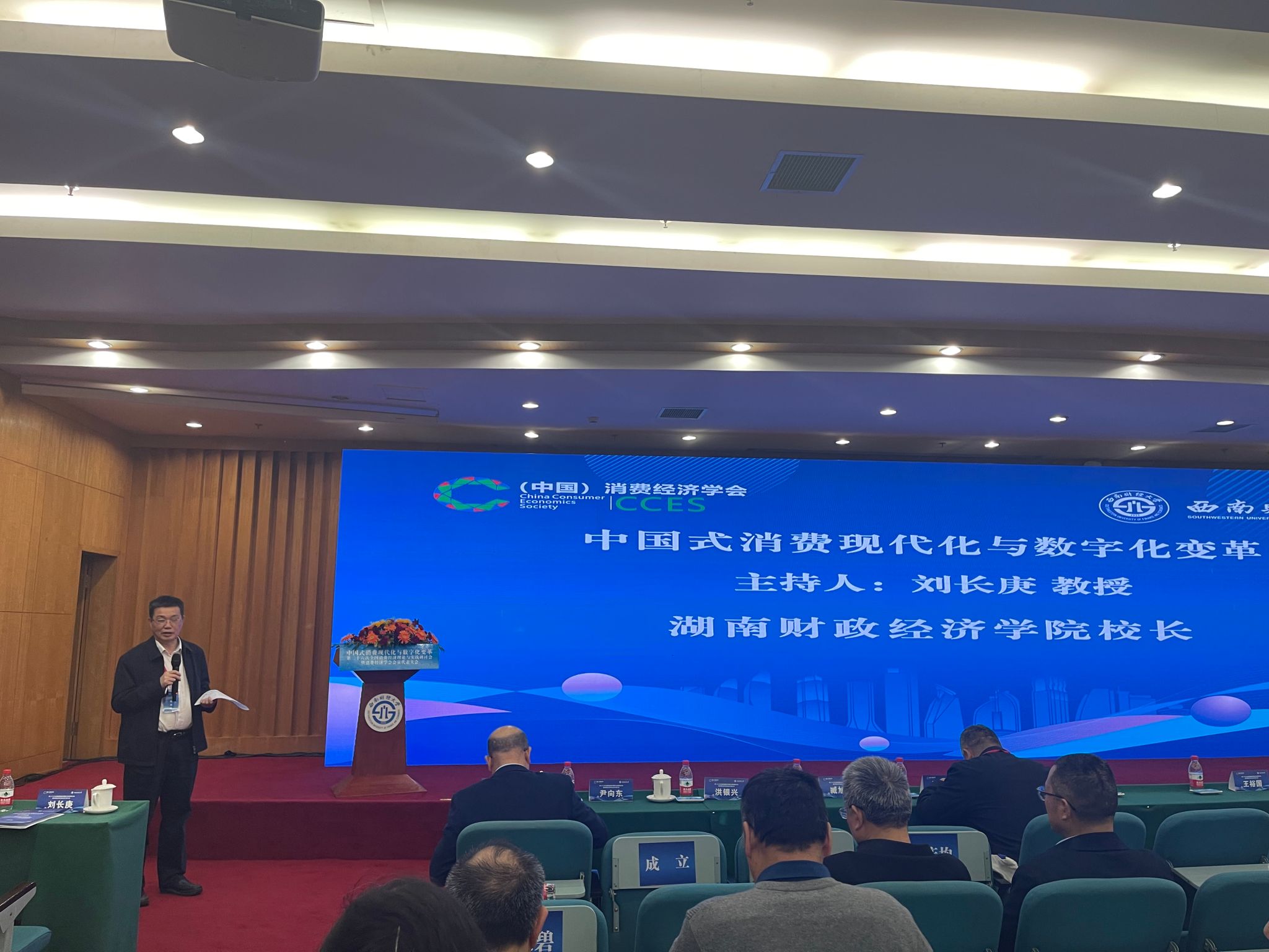 (本网讯)近日,第二十六次全国消费经济理论与实践研讨会暨消费经济学会会员代表大会在西南财经大学召开。Beat365校长刘长庚在会上作主题报告,财政金融院院长刘辉煌、数学与统计学院院长尹向飞、经济学院副院长彭千芮等参加会议。刘长庚在会上作“中国居民消费率的合理测算与国际比较”主题报告本次会议由消费经济学会主办、西南财经大学承办,来自北京大学、中国人民大学、山东大学等40多所高校230多名专家学者与学生参加会议。与会嘉宾围绕研讨会主题“...