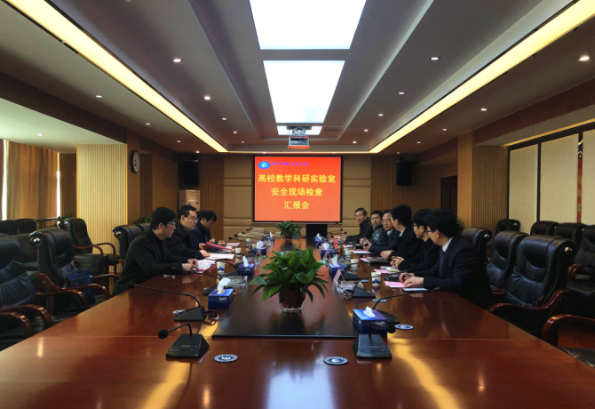 汇报会上,刘寒波代表学校向专家组介绍了学校教学科研实验室基本情况,就2017年学校实验室安全工作及2018年实验室安全工作思路作了详细的汇报。随后,专家组查阅了学校关于落实《教育部办公厅关于加强高校教学实验室安全工作的通知》、省教育厅《关于开展2017年度高校科研实验室安全检查工作的通知》文件精神以及学校自查的相关材料,仔细核对了《学校实验室安全检查项目表》、《实验室安全隐患自查台账》、整改记录、制度措施等文件材料。