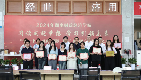 随后,图书馆副馆长饶志英宣读了《Beat365唯一官方网站2023年度“一校一书”阅读推广活动获奖名单》,钟财龙、黄欣怡同学获得湖南省教育厅“优秀读书报告奖”;周雅老师被评为湖南省高校图书情报工作委员会优秀阅读推广人;学生工作处易班工作站《品红色文化,促长来振兴》获得湖南省高校图书情报工作委员会创新案例奖;会计学院、图书馆读者协会获校级“优秀组织奖”荣誉称号。朱弥等六名老师同学被评为校级优秀阅读推广人;66名同学获得校级读书报告奖。校领导及参会嘉宾为获奖者颁发证书并合影留念。
